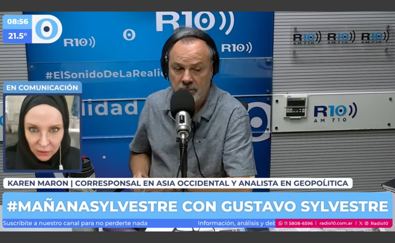 El programa Mañana Sylvestre conducido por Gustavo Sylvestre en Radio 10, entrevistó a Karen Maron, corresponsal de guerra y analista en geopolítica con 25 años de experiencia en Asia Occidental.