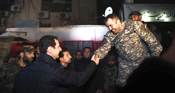 El presidente sirio, Bashar Al Asad, visitó una zona en las afueras de Damasco, y agradeció a los soldados que luchan "en la cara del terrorismo", dijo su oficina en su cuenta de Twitter el miércoles la publicación de fotos de la visita.