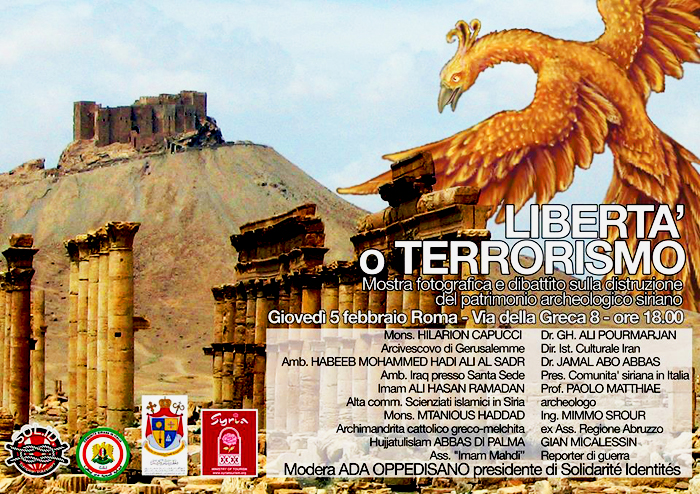 Exposición fotográfica de 10 días en Roma da cuenta de los crímenes sufridos por Siria y su pueblo a manos del accionar terrorista sectario y su corolario destructivo humanitario y del patrimonio arqueológico sirio y de la Humanidad.