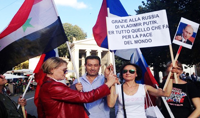 El comité ruso-italiano junto a la comunidad siria en Italia, organizaron una marcha en la ciudad de Roma para apoyar la participación de Rusia en la lucha contra el terrorismo en Siria.