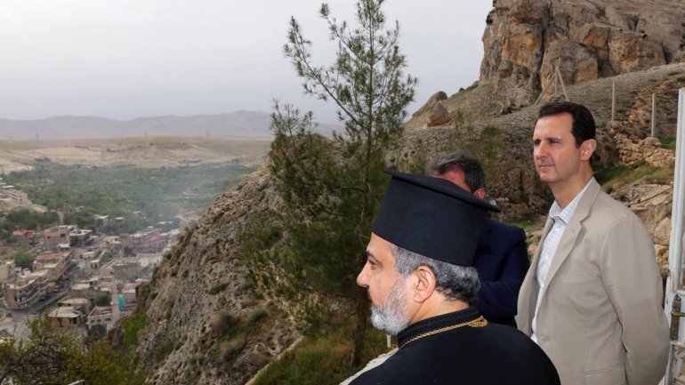 Al Assad recorrió el monasterio de San Serkis y Bajus para informarse de los supuestos daños sufridos por el edificio cuando estaba "en manos de los terroristas", como se refiere a los rebeldes, que fueron desplazados de la ciudad la semana pasada. Allí también deseó "una Pascua bendita para todos los sirios y el retorno de la paz y la seguridad a todos los rincones del país".