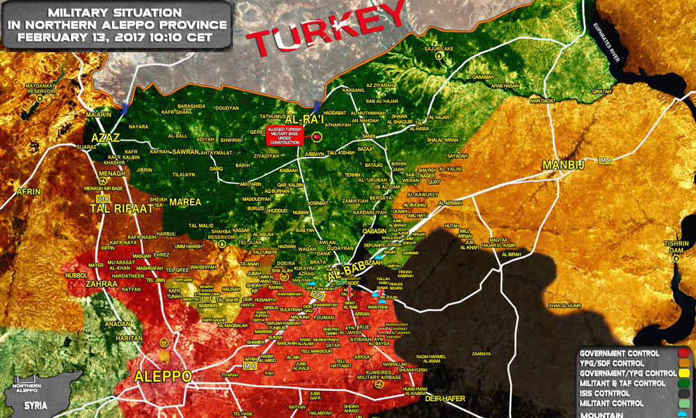 ► Turcos en Al Bab: al norte de la provincia de Alepo, en derredor de la ciudad de Al Bab , las fuerzas armadas de Turquía junto a los armados pro-turcos (FSA) siguen insistiendo en expulsar a DAESH, cambiando esta semana el flanco de ataque, ya no por el noreste, sino por el norte y oeste de la ciudad.
