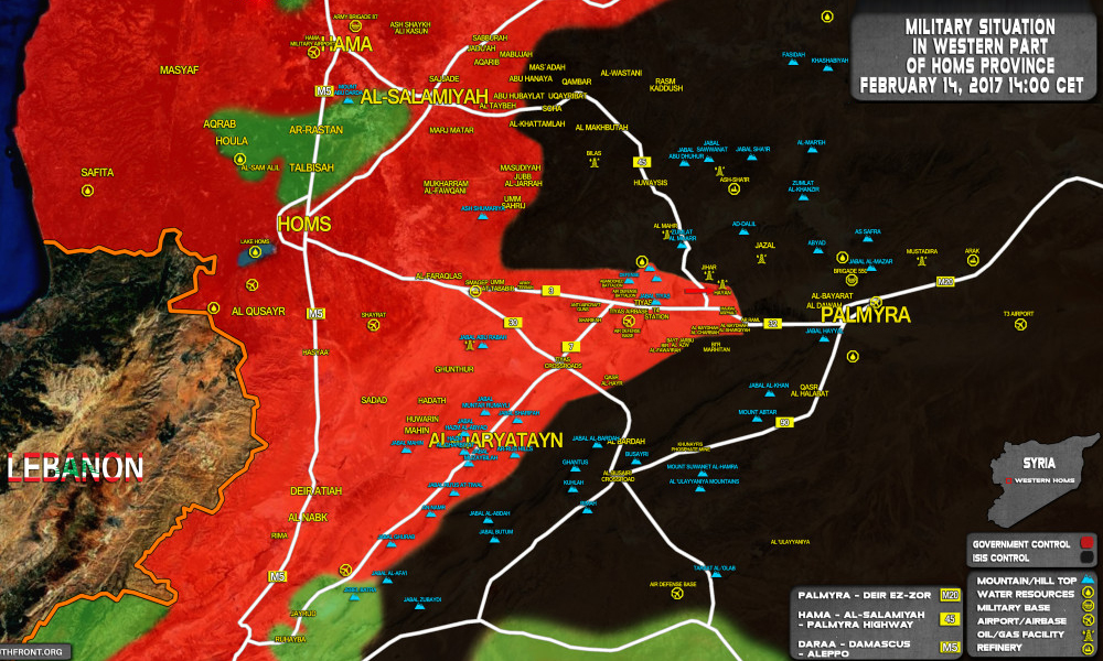 Este frente que tiene por objetivo la re-liberación de Palmira, está directamente relacionado con la asistencia a las tropas leales cercadas por DAESH, más al este en la homónima capital de la provincia de Deir Ezzor.
