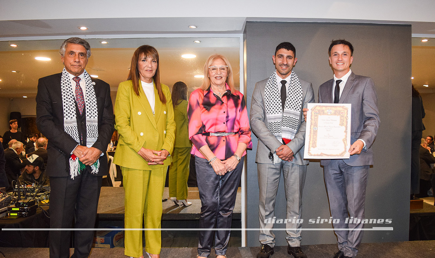 “Este homenaje en Argentina, en una casa árabe como el Club Sirio Libanés, tiene un significado inmenso. Aquí, lejos de Palestina, sentimos que nuestra causa no está sola. La memoria de nuestros abuelos que llegaron a estas tierras desde Siria, Líbano y Palestina se encuentra viva en ustedes, y con este acto nos recuerdan que Palestina no es solo un lugar en un mapa: es una herida compartida, una identidad compartida y un sueño compartido”, expresó el Dr. Al Halabi en su emotivo mensaje.